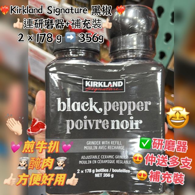 ❤️🔥Kirkland Signature 黑椒 ❤️🔥black pepper 👍🏻連研磨器+補充裝👍🏻 2 x 178 g ➡️ 356g