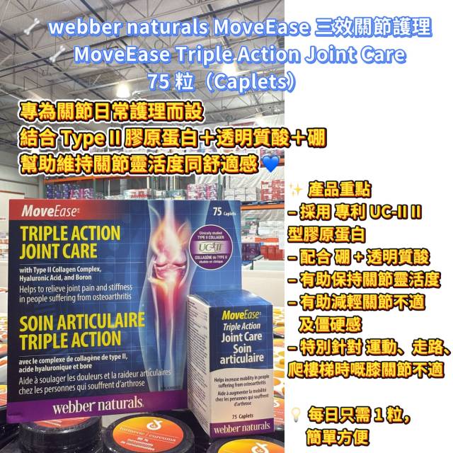 🦴 Webber Naturals MoveEase 三效關節護理 🦴 MoveEase Triple Action Joint Care 75 粒(Caplets)