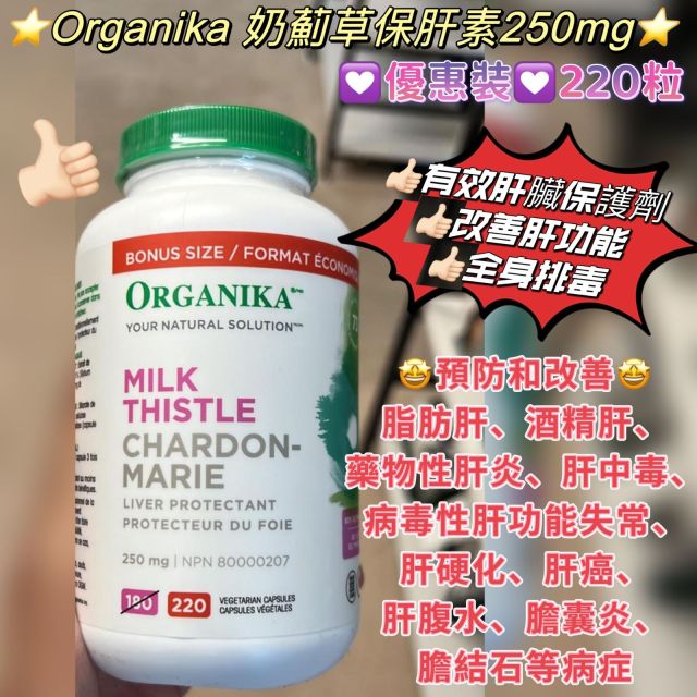 ❤️🔥Organika 奶薊草保肝素 250mg Milk Thistle ❤️🔥 💟優惠裝💟220粒💟