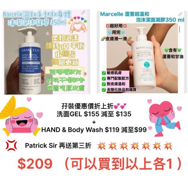 Marcelle溫和手部和身體清潔泡沫凝膠 - 350ml & Marcelle 蘆薈超溫和泡沫潔面凝膠 350 mL (EACH IN 1 PC)