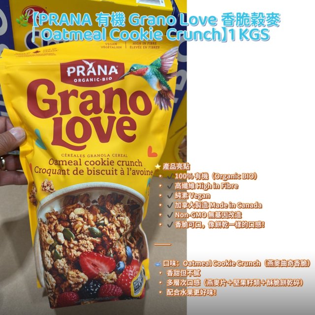 🌿【PRANA 有機 Grano Love 香脆穀麥 |Oatmeal Cookie Crunch】1 KGS
