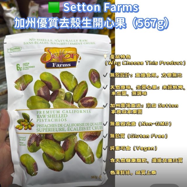 🟩 Setton Farms 加州優質去殼生開心果(567g)