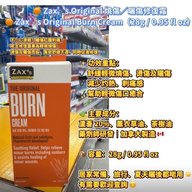 🟠 Zax’s Original 燒傷/曬傷修復霜 Zax’s Original Burn Cream(28g / 0.95 fl oz)
