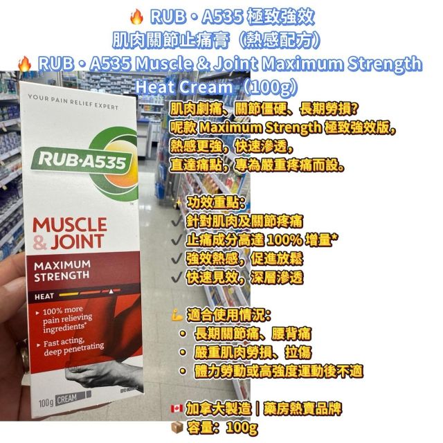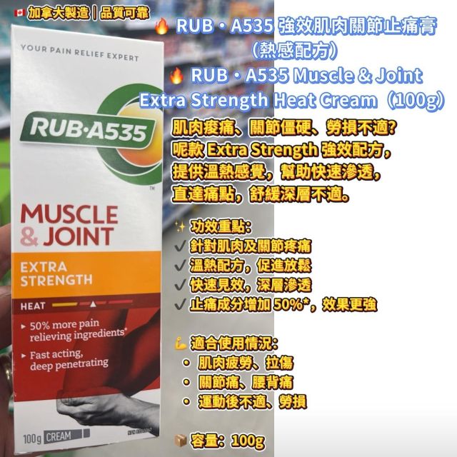 🔥 RUB·A535 強效肌肉關節止痛膏(熱感配方) RUB·A535 Muscle & Joint Extra Strength Heat Cream(100g)