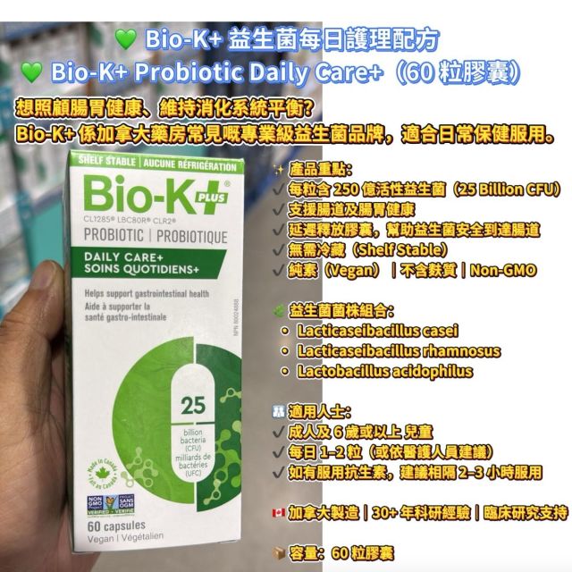 💚 Bio-K+ 益生菌每日護理配方 Bio-K+ Probiotic Daily Care+(60 粒膠囊)