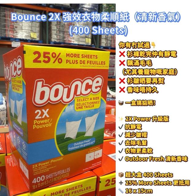 Bounce 2X 強效衣物柔順紙(清新香氣) Bounce 2X Power Dryer Sheets – Outdoor Fresh (400 Sheets)