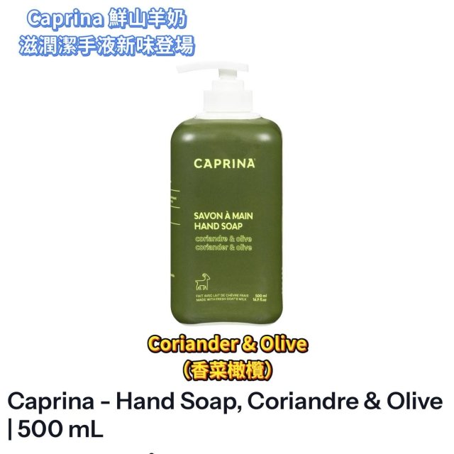Caprina 鮮山羊奶滋潤潔手液 -香菜橄欖 500ml Liquid Hand Soap - Coriander & Olive 500ml