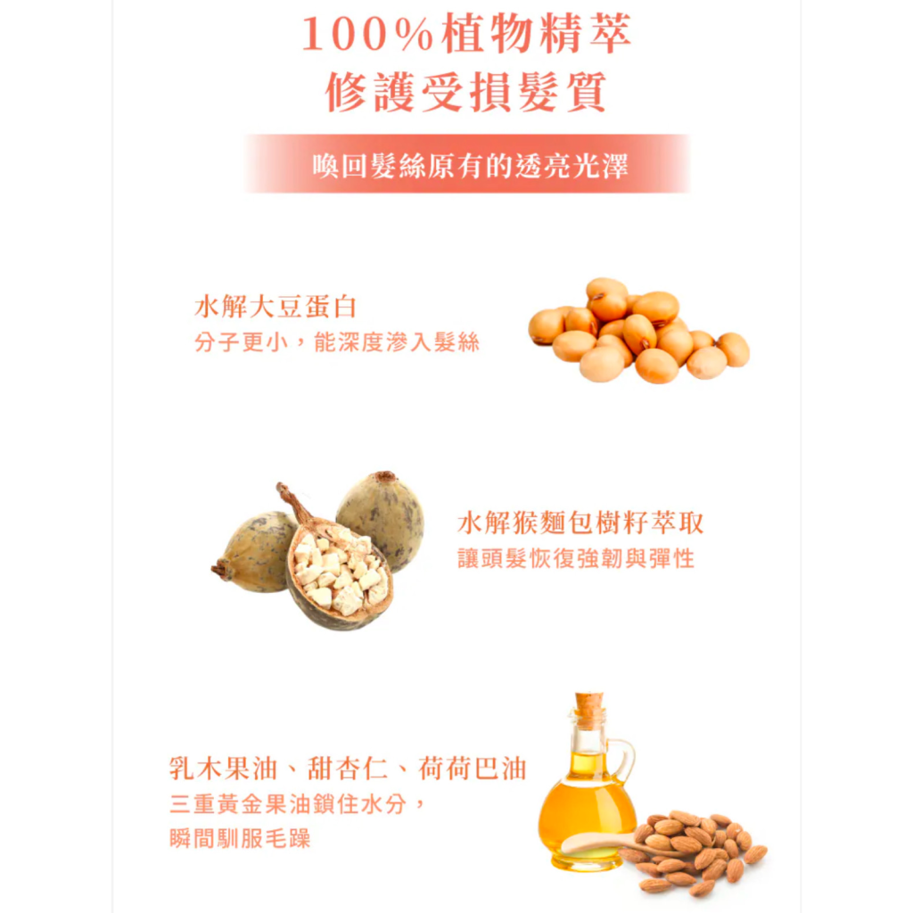 • 令頭髮更強韌、豐盈、有光澤