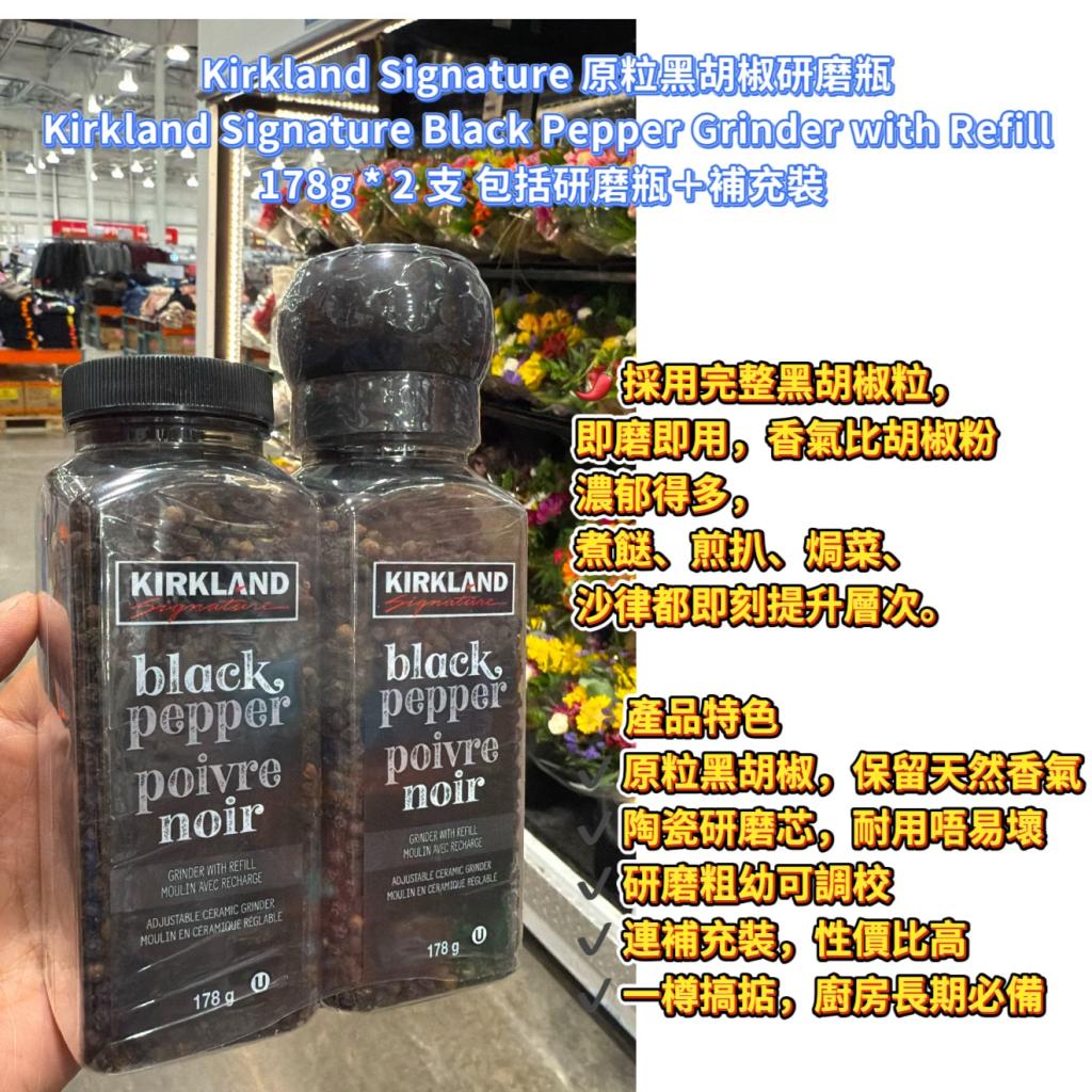 Kirkland Signature 原粒黑胡椒研磨瓶 Kirkland Signature Black Pepper Grinder with Refill 178g * 2 支 包括研磨瓶+補充裝