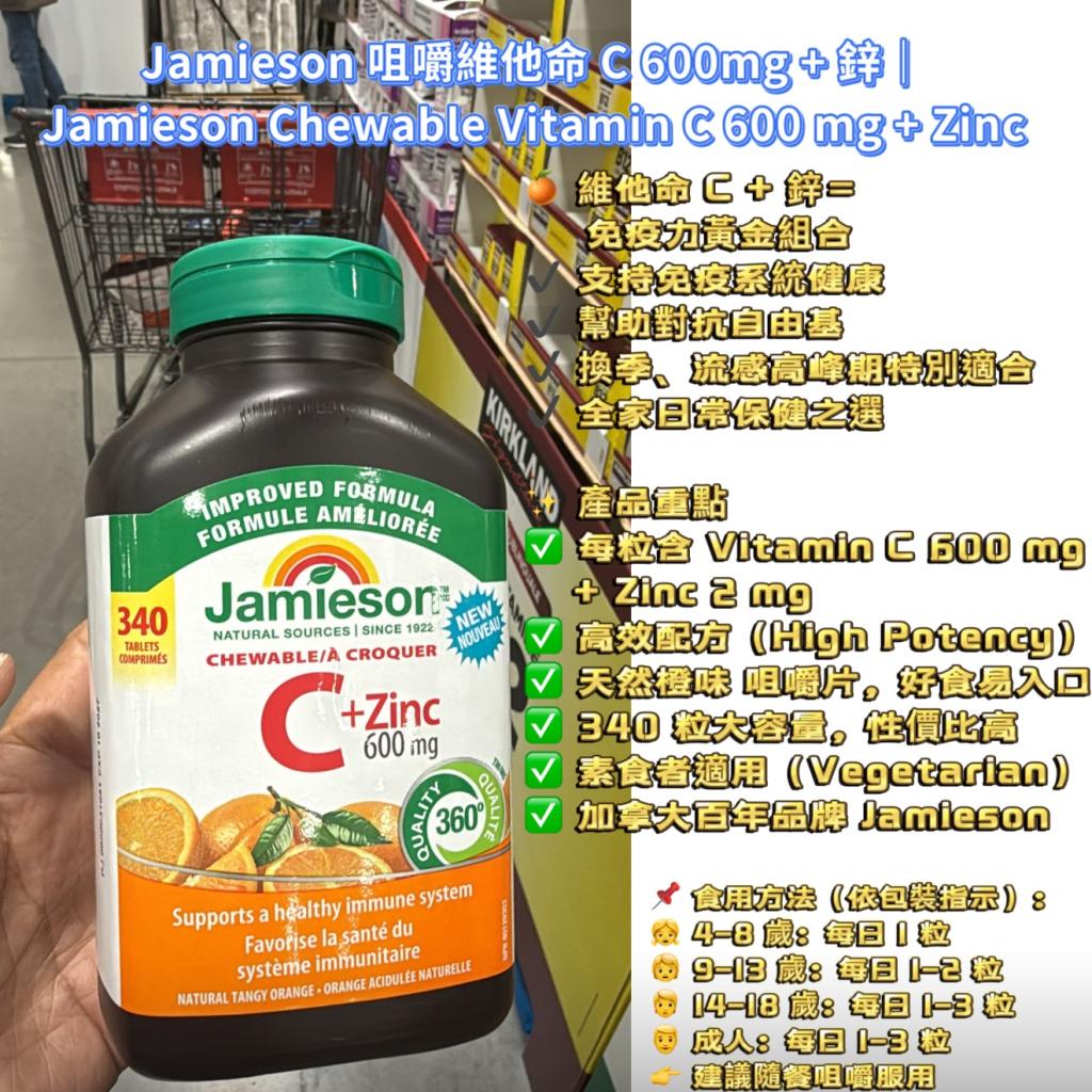 改良版 Jamieson Vitamin C + Zinc 600mg 維他命C + 鋅 600毫克(咀嚼片)340粒