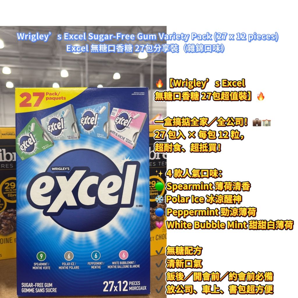 Wrigley’s Excel Sugar-Free Gum Variety Pack (27 x 12 pieces) Excel 無糖口香糖 27包分享裝(雜錦口味)