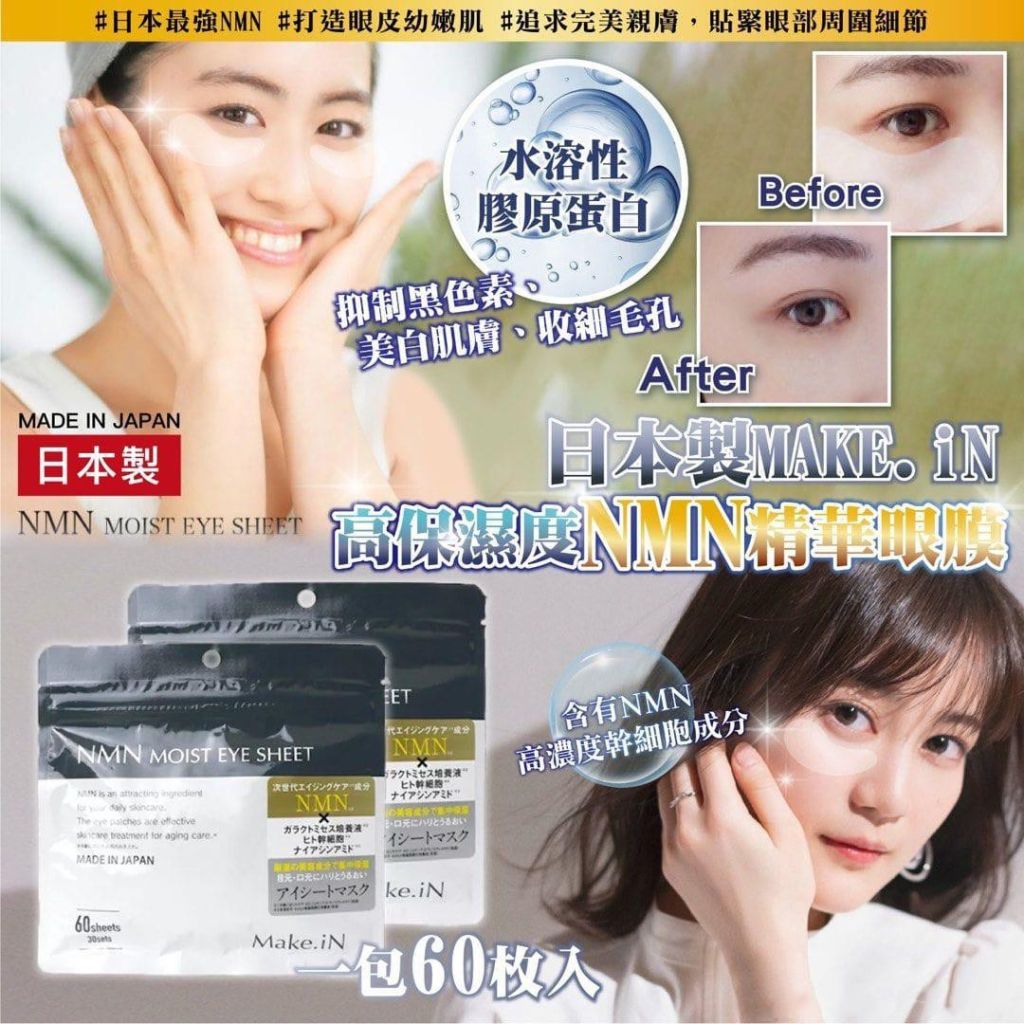 #日本製 MAKE.iN 高保濕度NMN精華眼膜 30對裝,日本最強NMN眼膜,限時優惠低至$59😱