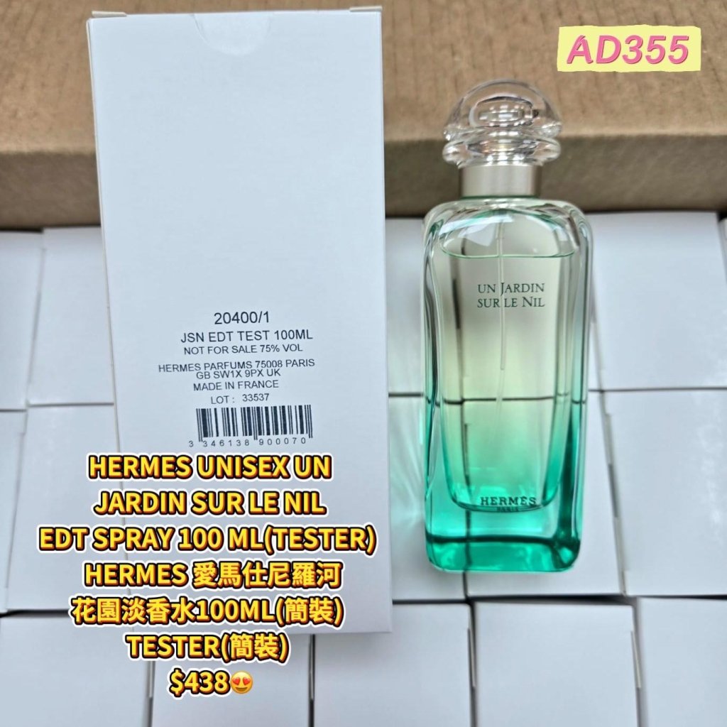 AD355 - HERMES UNISEX UN JARDIN SUR LE NIL EDT SPRAY 100 ML (TESTER) HERMES愛馬仕尼羅河 花園淡香水100ML(简裝)$438