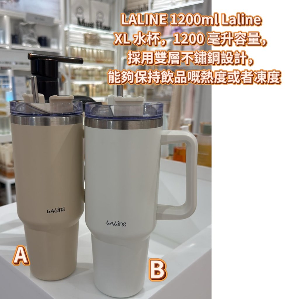 Laline XL 水杯,1200 毫升容量,採用雙層不鏽鋼設計,能夠保持飲品嘅熱度或者凍度。所以呢款杯其實係保溫、保凍兩用,方便你隨時享用