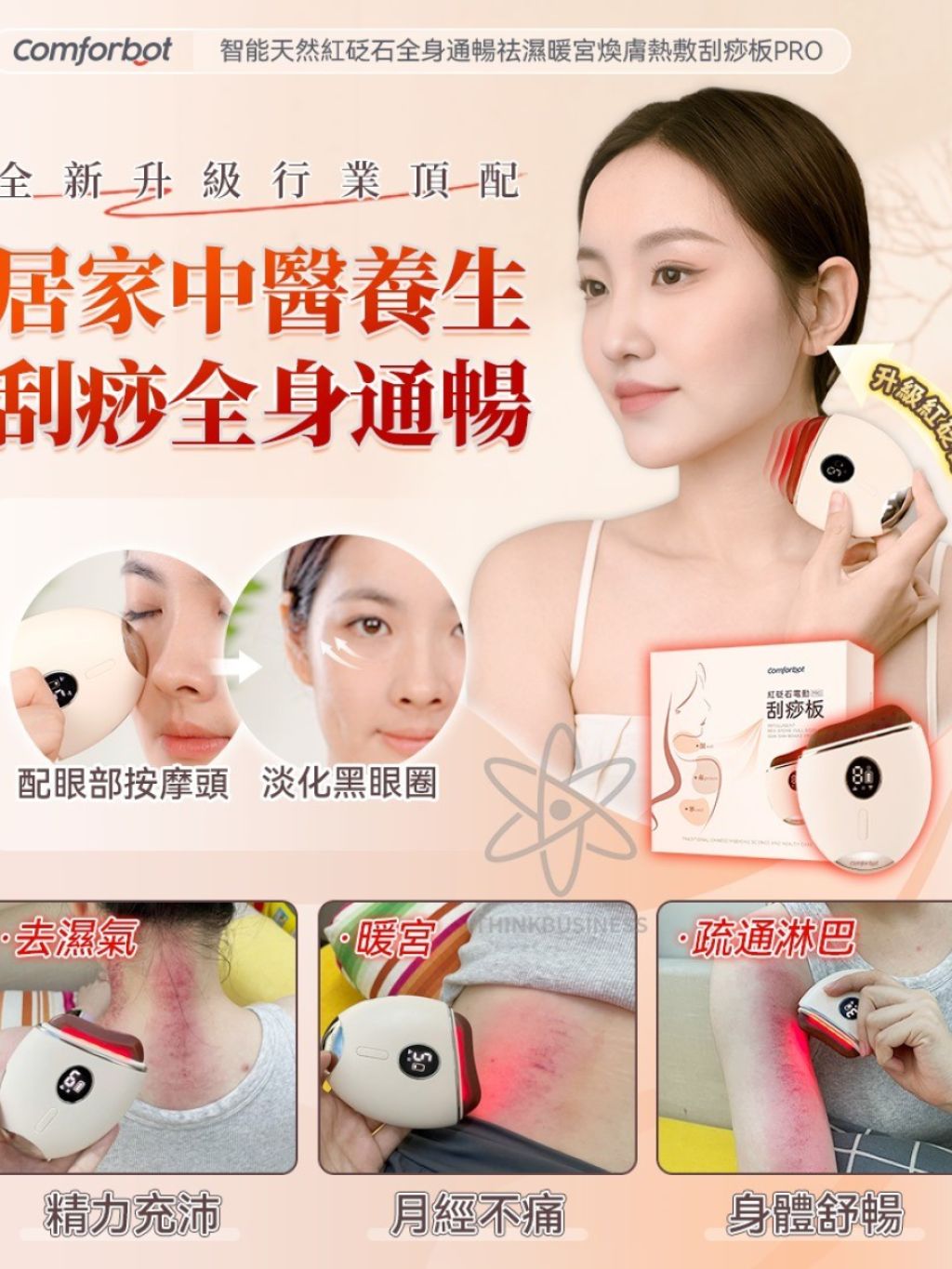 【Comforbot智能天然紅砭石全身通暢祛濕暖宮煥膚熱敷刮痧板PRO】