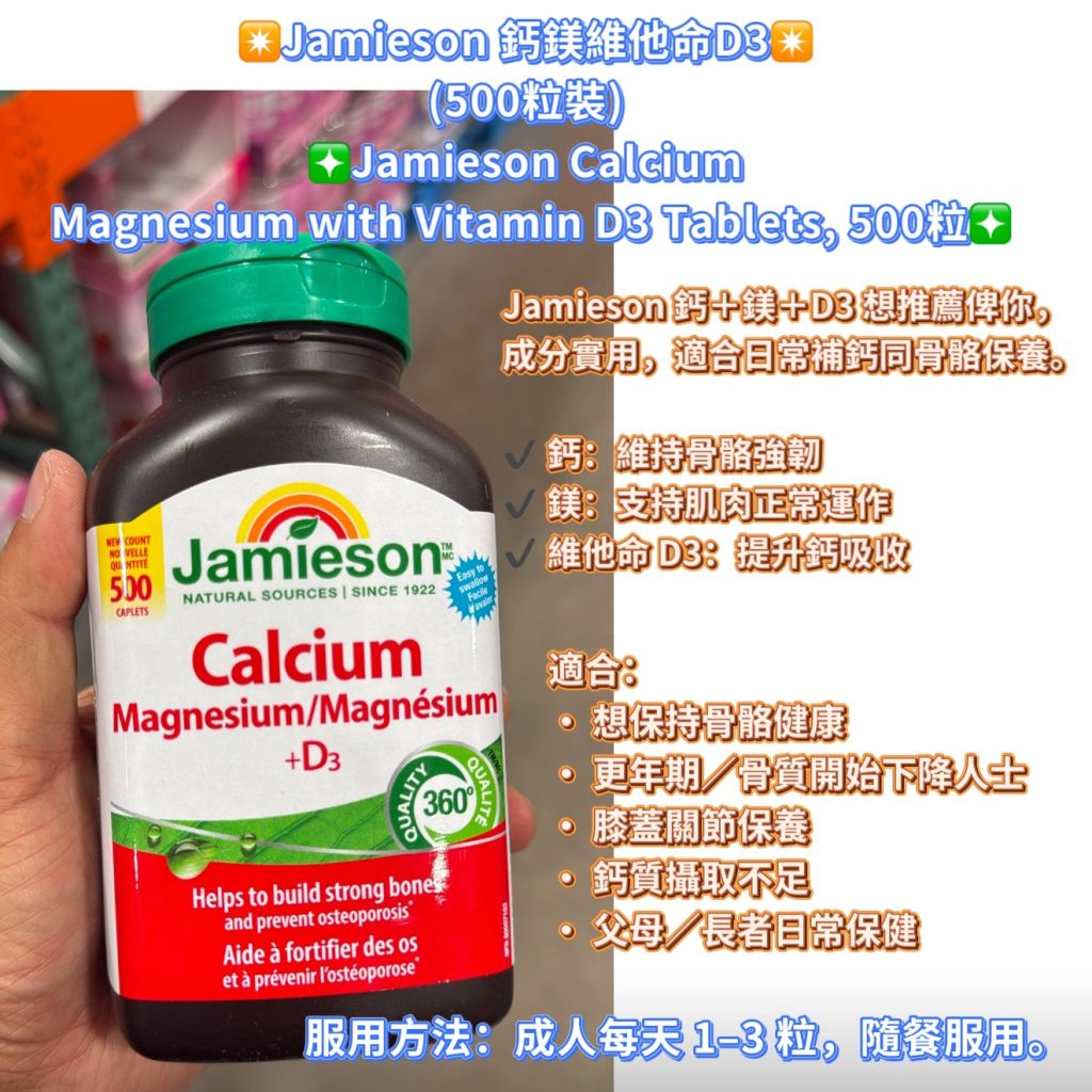 ✴️Jamieson 鈣鎂維他命D3✴️ (500粒裝) ❇️Jamieson Calcium Magnesium with Vitamin D3 Tablets, 500粒❇️