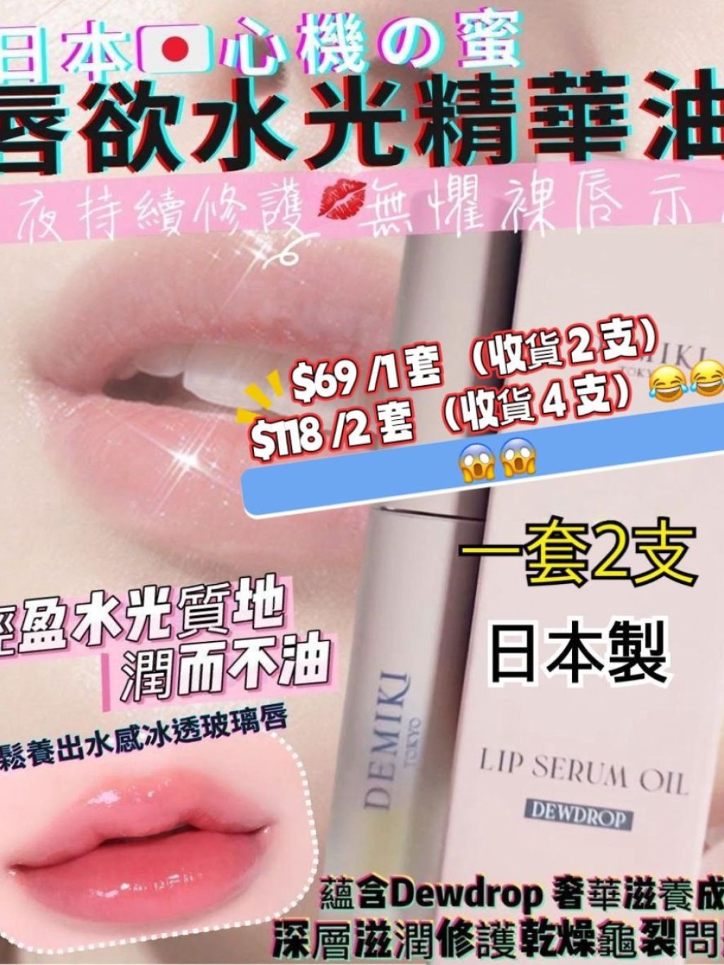 日本🇯🇵DEMIKI心機の蜜唇欲水光唇部精華油(一套2枝)