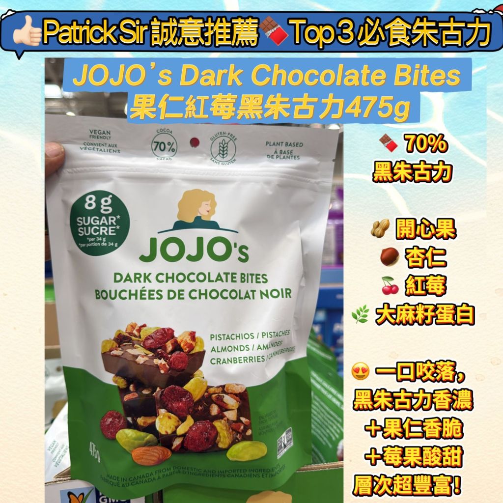 JOJO’s Dark Chocolate Bites 果仁紅莓黑朱古力 475g (正價)