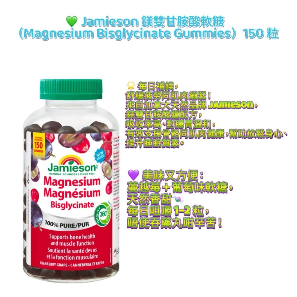 💚 Jamieson 鎂雙甘胺酸軟糖(Magnesium Bisglycinate Gummies)150 粒|・骨骼更健康🦴放鬆肌肉・改善睡眠💤