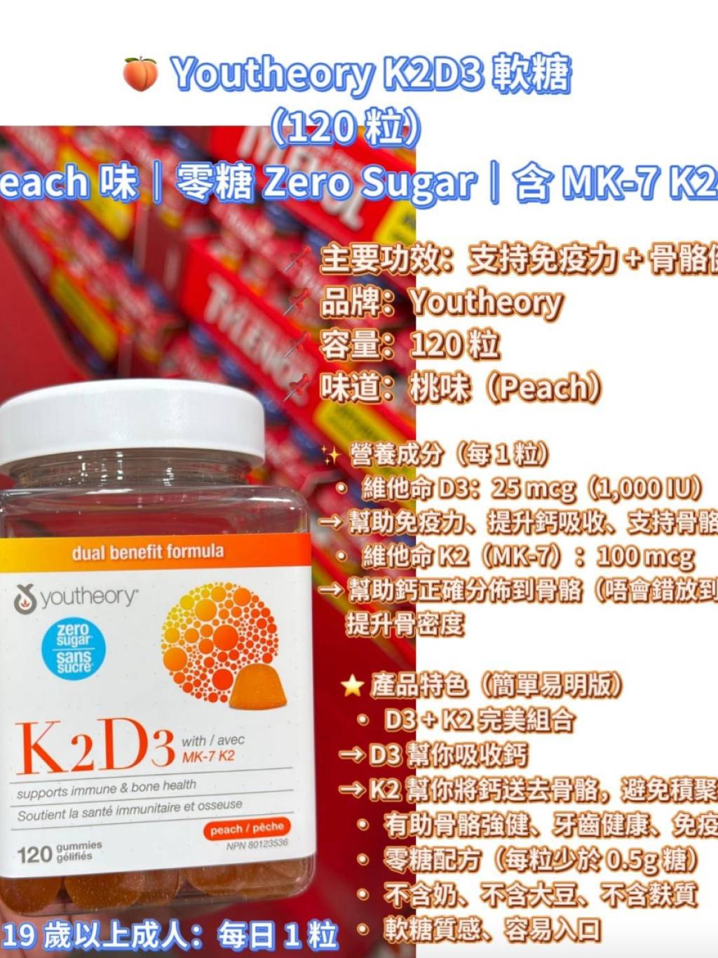 🍑 Youtheory K2D3 軟糖(120 粒)