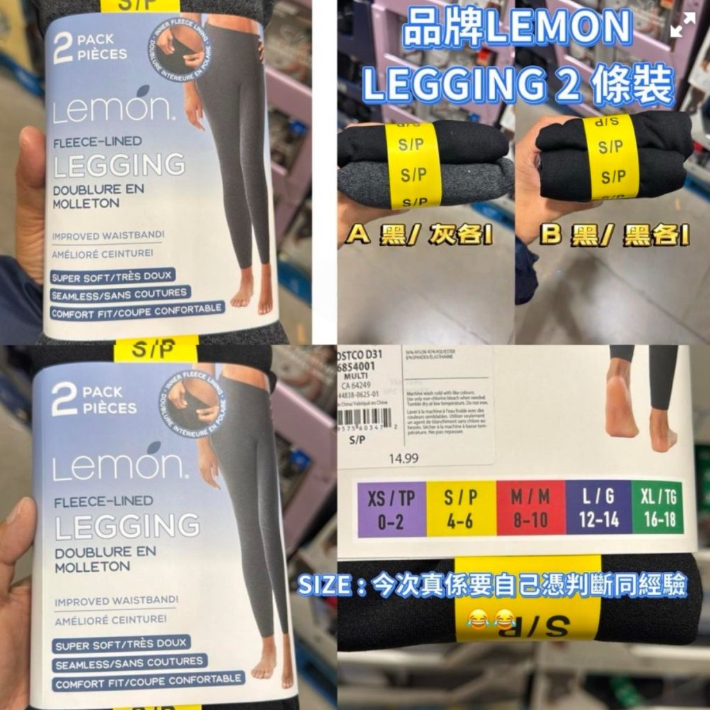 🧦 品牌:LEMON 保暖 Fleece 裡刷絨 Legging(2 條裝)