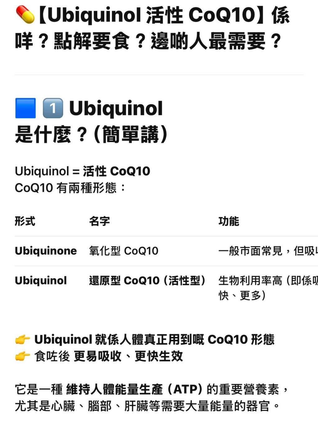 🔥 高吸收活性 CoQ10(比一般 CoQ10 更易吸收)