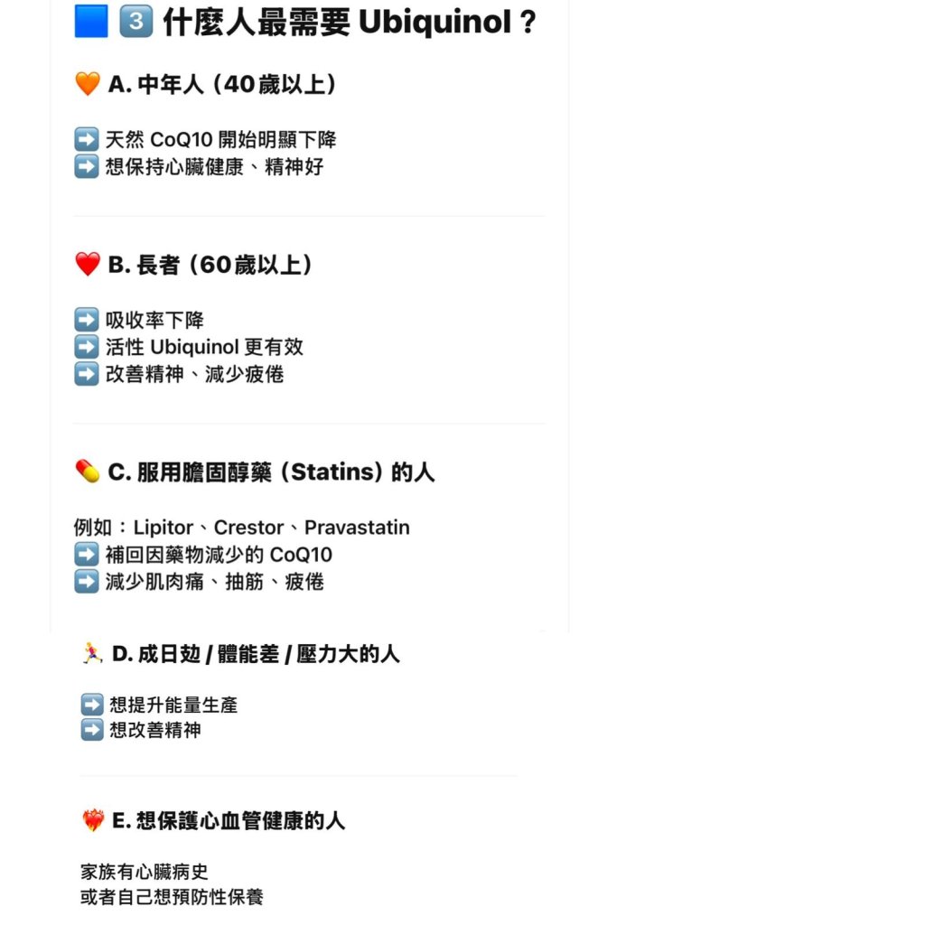 ✔ 補充身體隨年齡下降的 Ubiquinol 水平