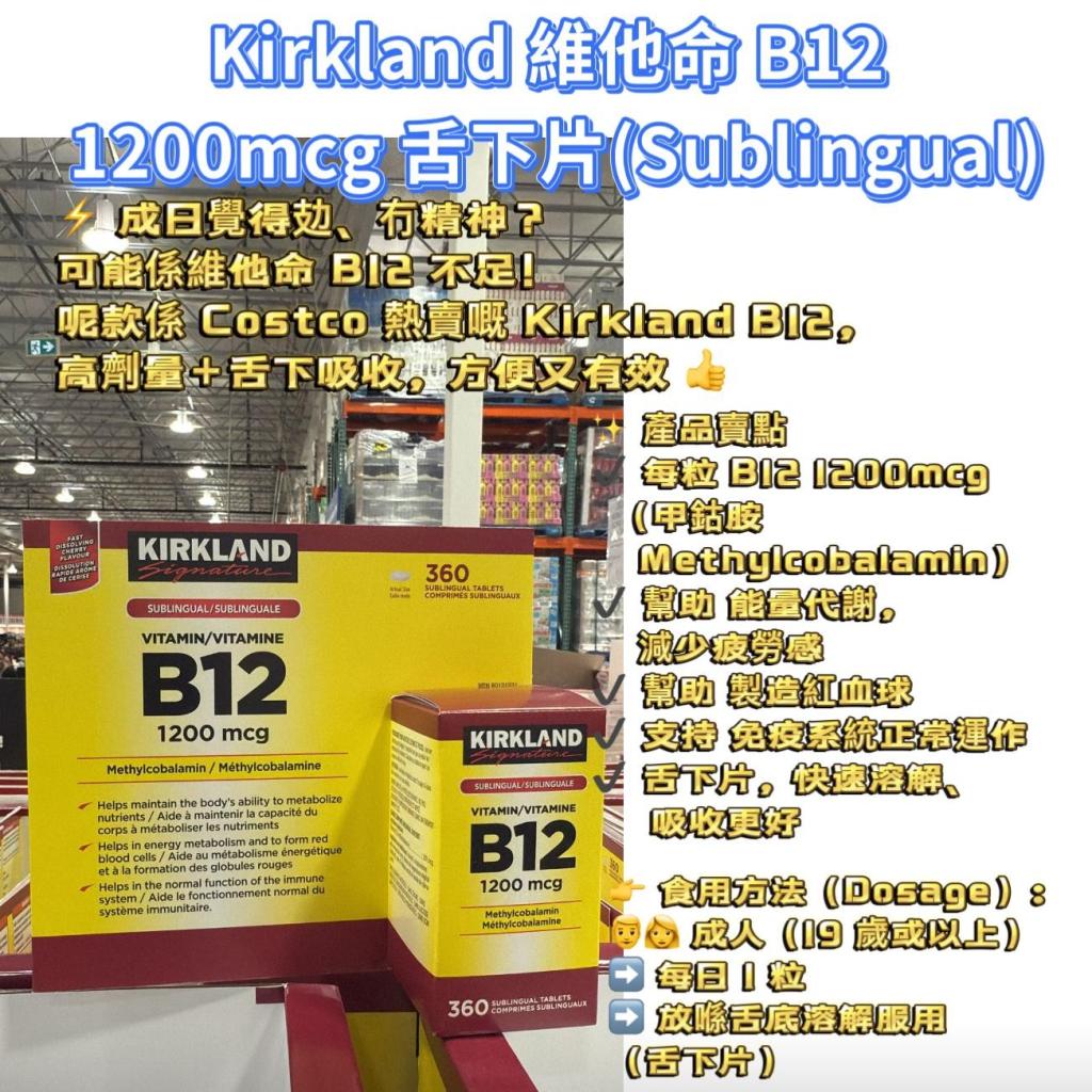 呢款係 Costco 熱賣嘅 Kirkland B12,高劑量+舌下吸收,方便又有效 👍