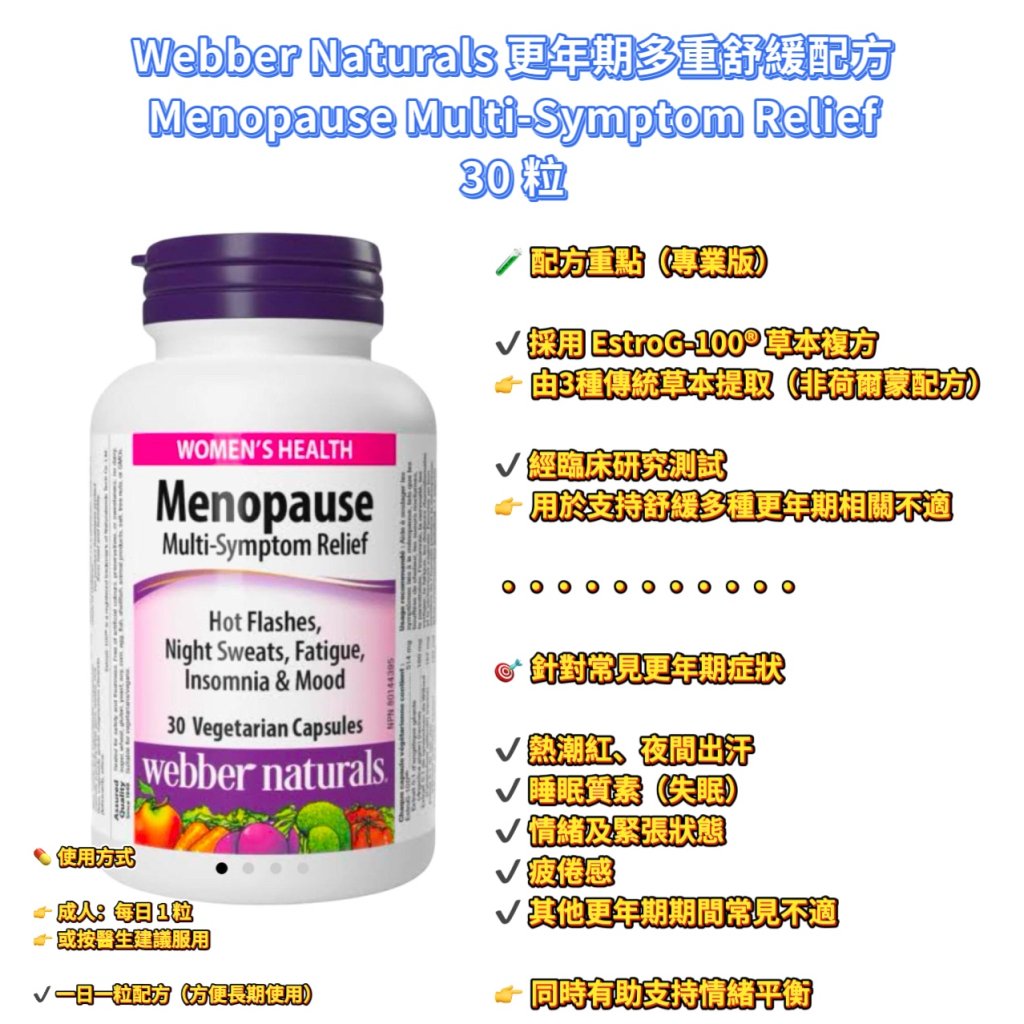 Webber Naturals 更年期多重舒緩配方 Menopause Multi-Symptom Relief 30 粒