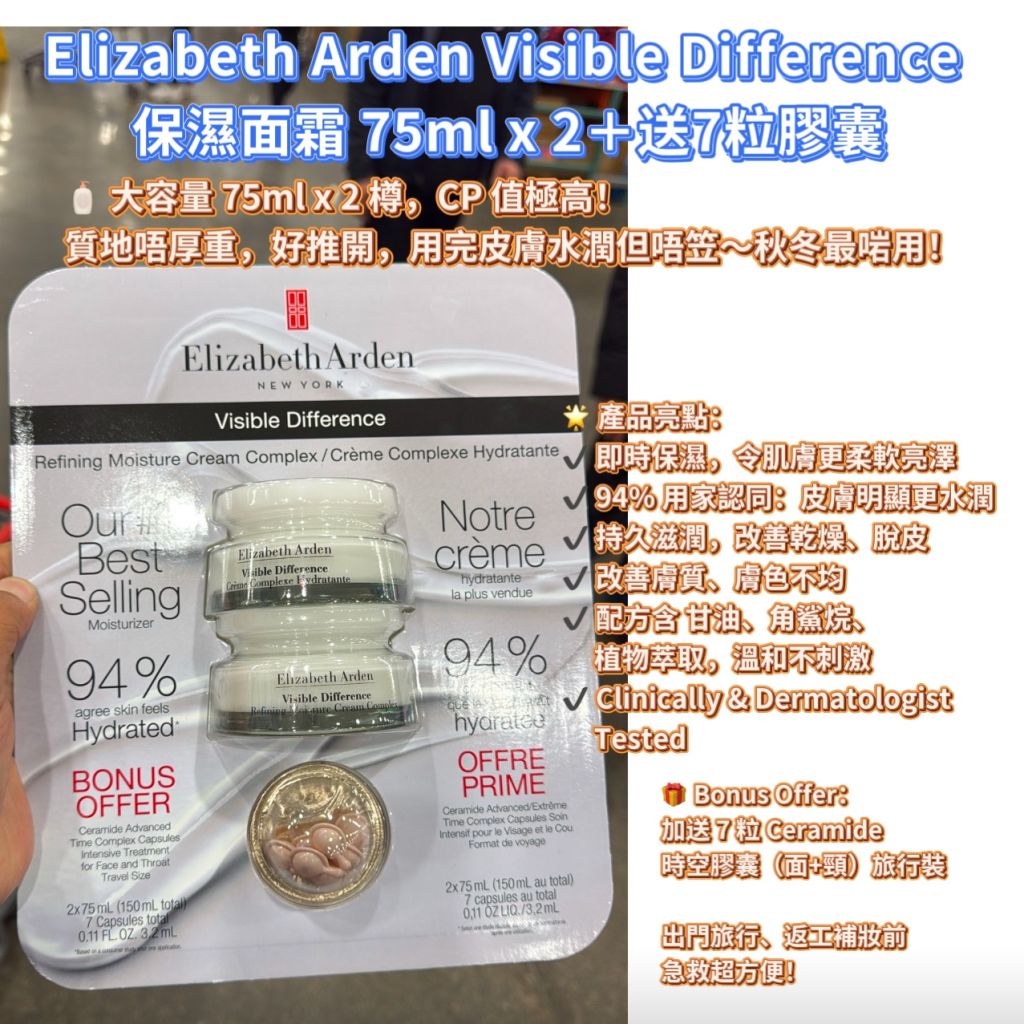 Elizabeth Arden Visible Difference 保濕面霜 75ml x 2+送7粒膠囊