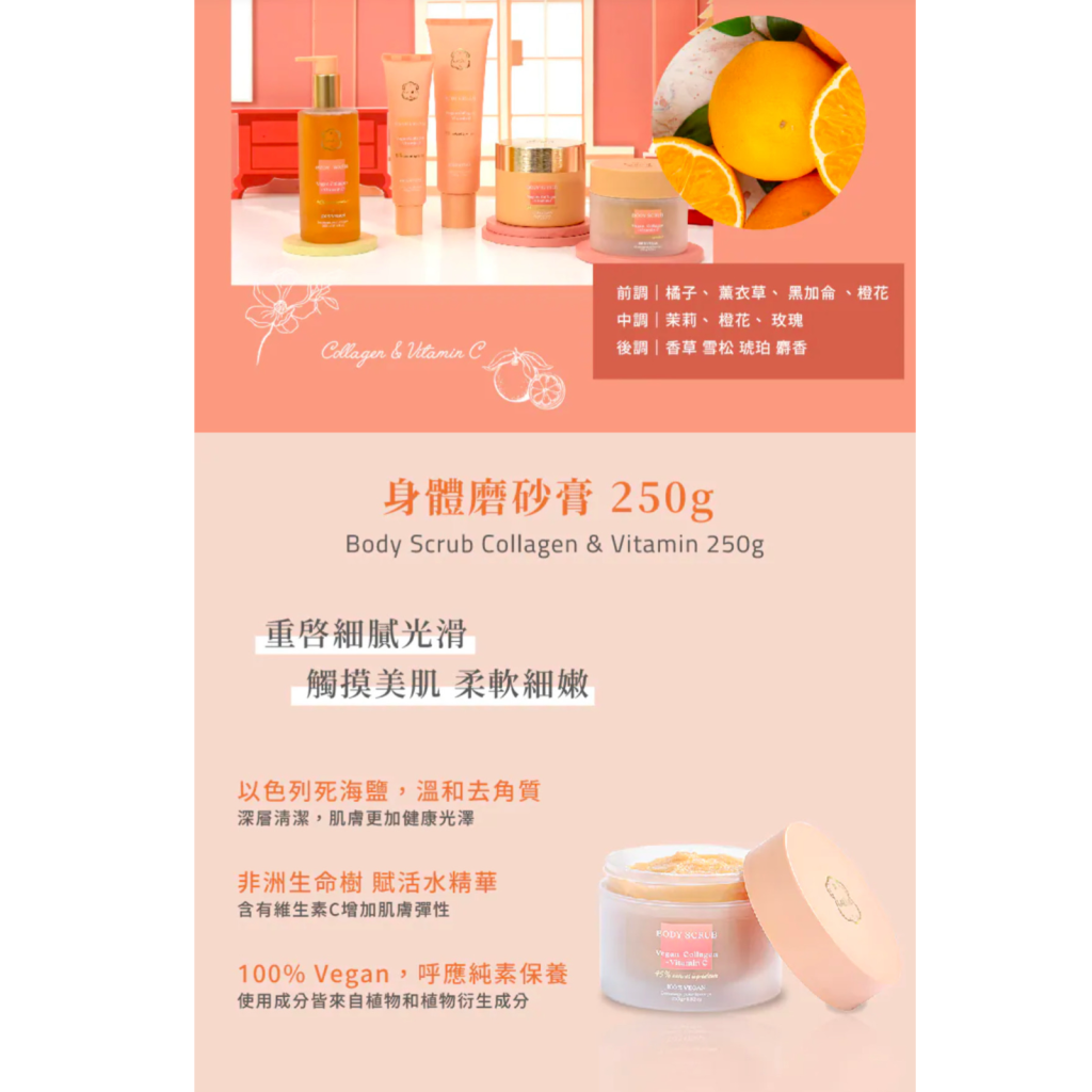 Laline 膠原維生素C身體磨砂膏 (送木匙羹) Vegan Collagen & Vitamin C Body Scrub 250g