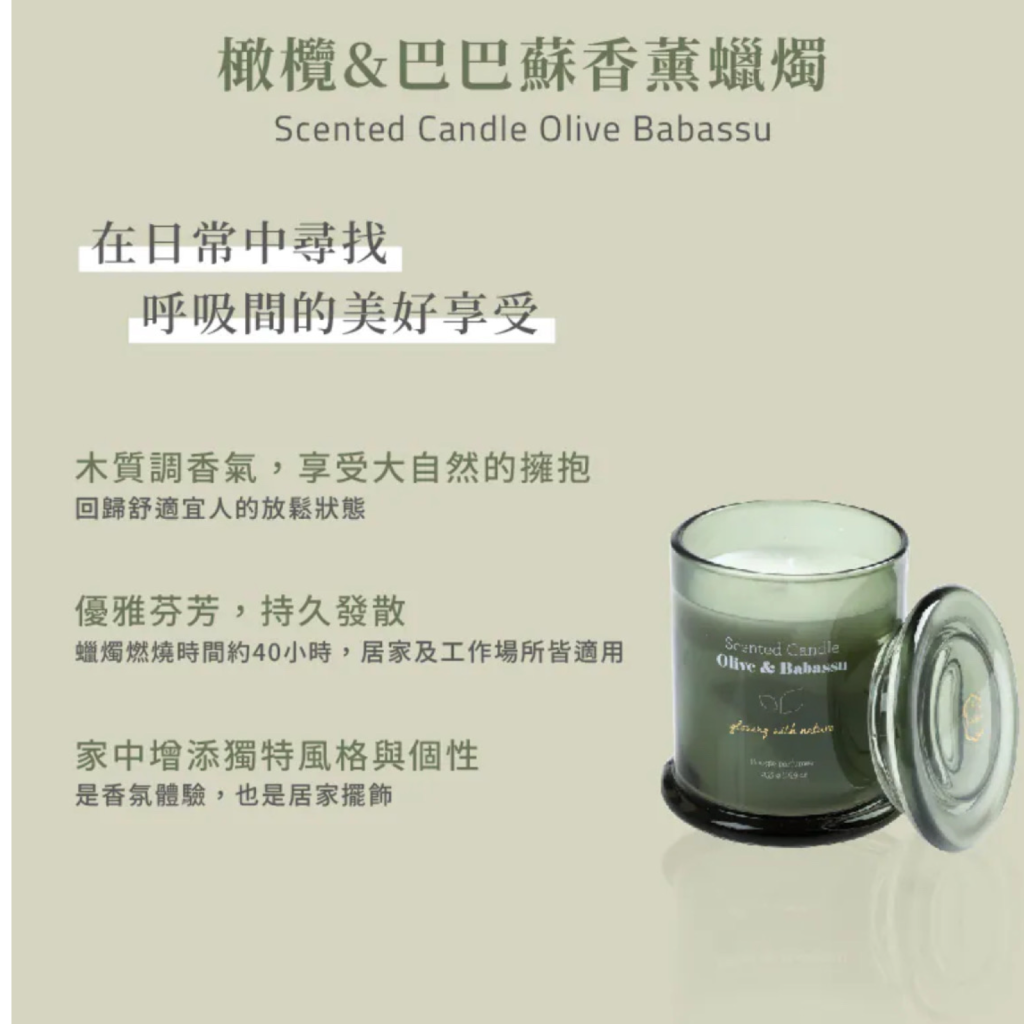 Laline 橄欖&巴巴蘇香薰蠟燭 Olive & Babassu Glass Candle