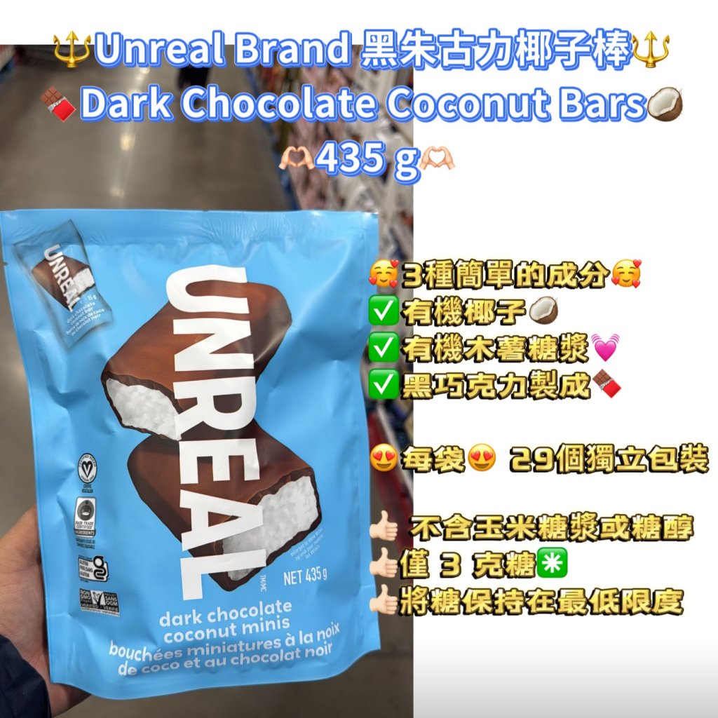 🔱Unreal Brand 黑朱古力椰子棒🔱 🍫Dark Chocolate Coconut Bars🥥 🫶🏻435 g🫶🏻