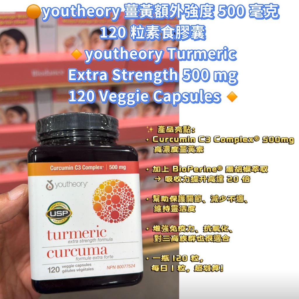 🟠youtheory 薑黃額外強度 500 毫克 120 粒素食膠囊 🔸youtheory Turmeric Extra Strength 500 mg 120 Veggie Capsules 🔸
