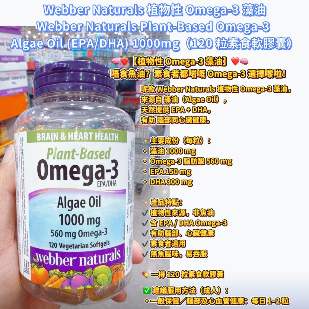 Webber Naturals 植物性 Omega-3 藻油Webber Naturals Plant-Based Omega-3 Algae Oil (EPA/DHA) 1000mg(120 粒素食軟膠囊)