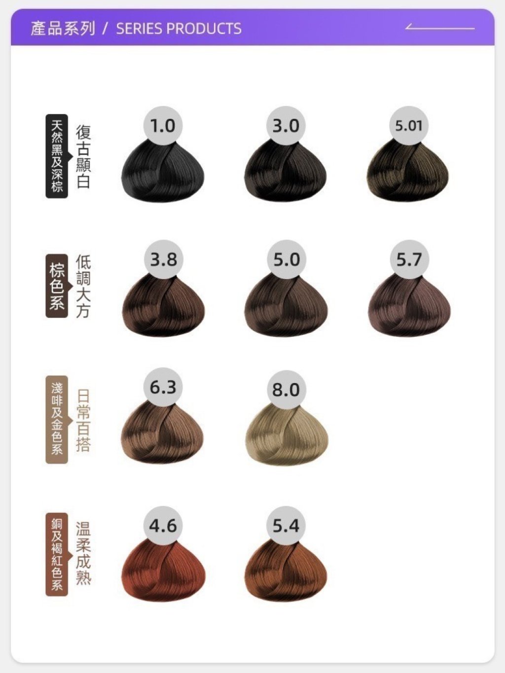 首創針對成熟頭髮進行髮質與色彩呵護的天然無氨配方,減低染劑對頭皮頭髮的傷害與致敏風險同時融入兩大創新科技以及天然植萃組成的抗衰老配方,針對頭皮和脆弱受損髮質進行有效的修護減少染髮對髮質的傷害,修復頭髮毛鱗片,提升頭髮強韌度,喚醒頭髮自身活力,呵護頭皮健康。