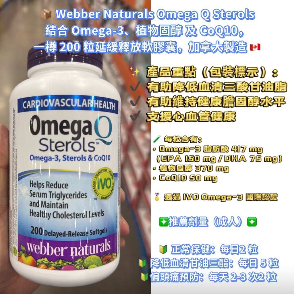結合 Omega-3、植物固醇 及 CoQ10,一樽 200 粒延緩釋放軟膠囊,加拿大製造 🇨🇦