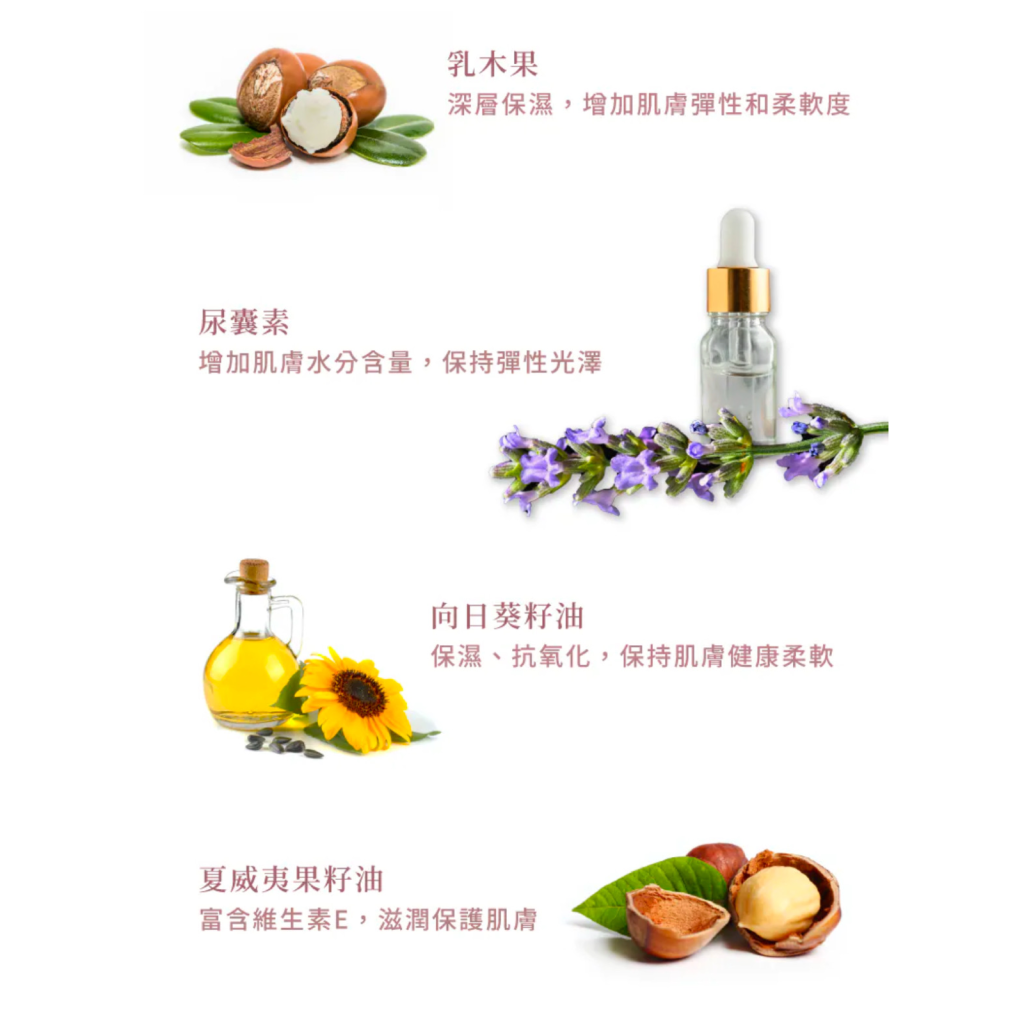 呵護肌膚:按摩肌膚至完全吸收。最好儲存在 25°C 以下。