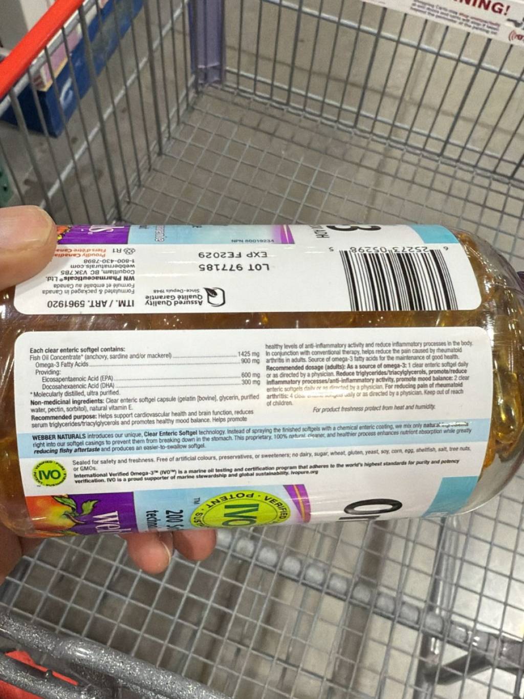 😊每粒Webber Naturals三倍強度Omega-3透明腸溶軟膠囊
