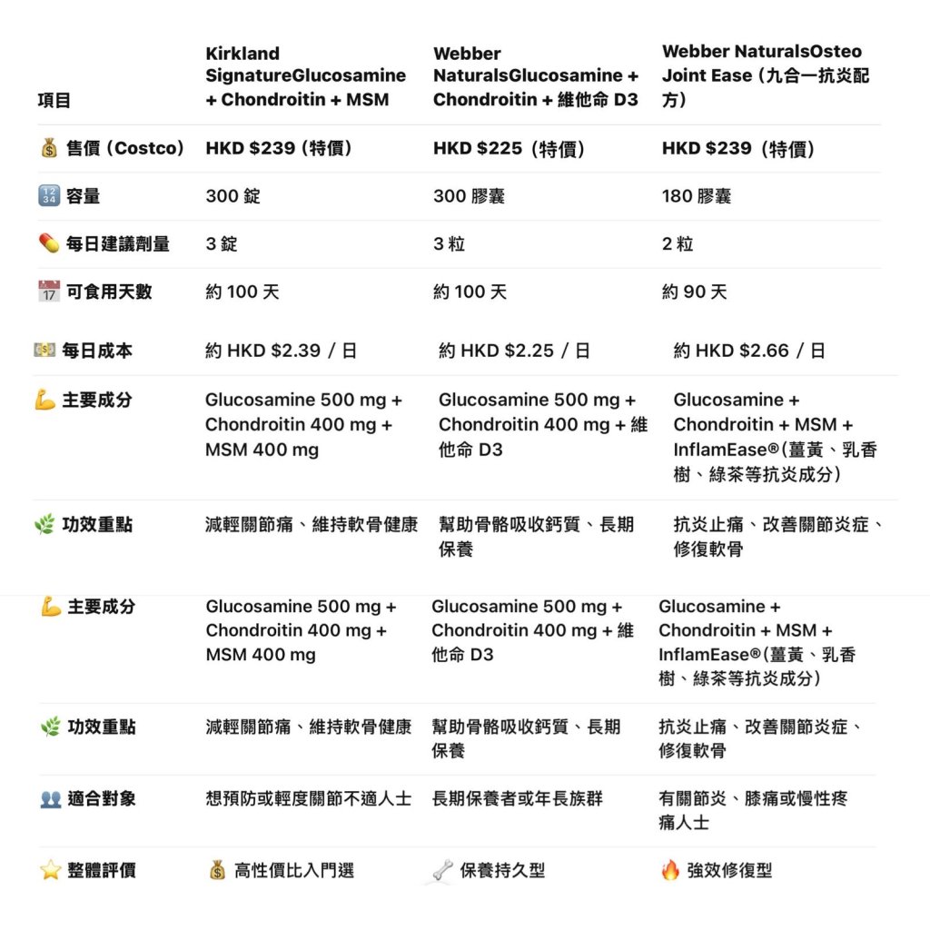 •含 MSM 的那款(Kirkland 版本)主要是為了幫助減輕關節炎引起的疼痛和發炎,因為 MSM 有一定的抗炎作用。