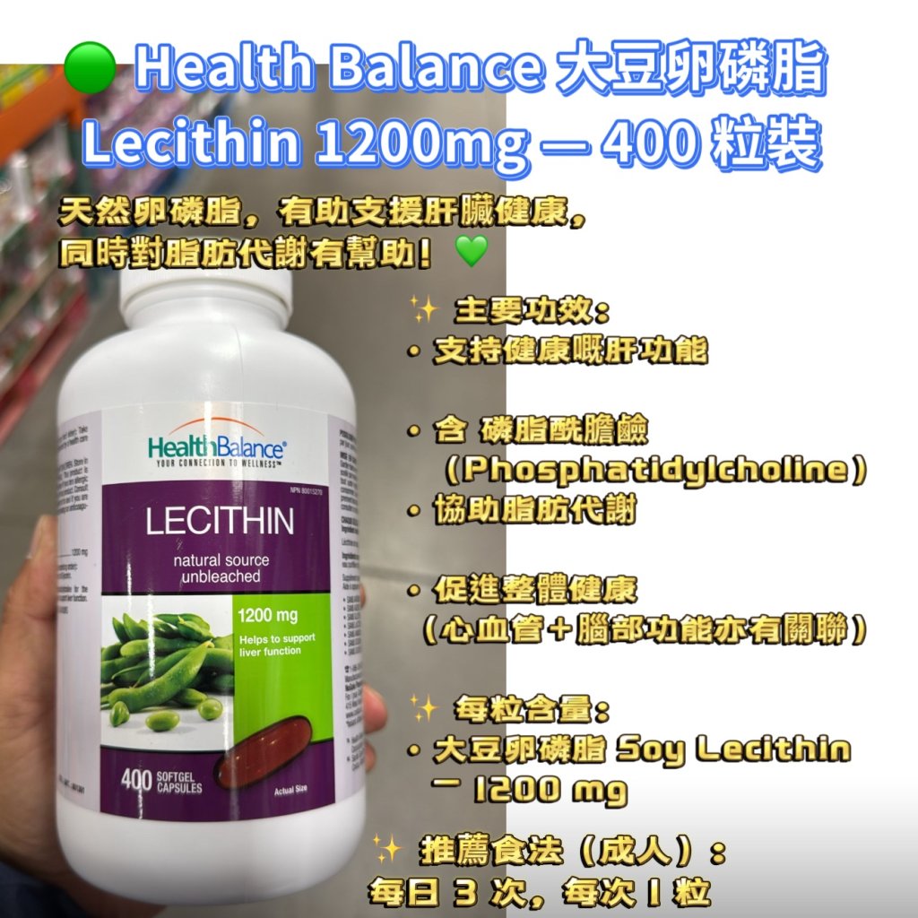 🟢 Health Balance 大豆卵磷脂 Lecithin 1200mg — 400 粒裝